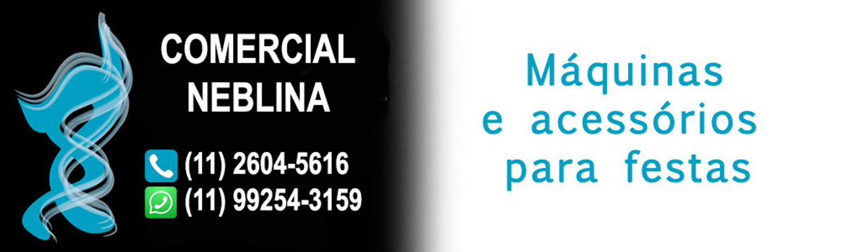 A Comercial Neblina é especializada em Líquidos para Máquinas de Fumaça e Bolhas, Papel picado, Garras para aparelhos, Globos Espelhados, além de Máquinas, Equipamentos e Acessórios para Festas .